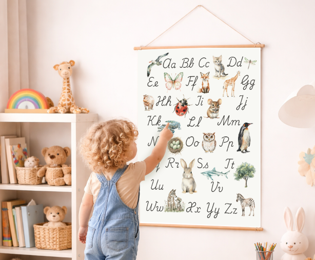 Een alfabet poster is een kleine toevoeging met een groot effect. Door dagelijks in beeld te zijn, helpt het je kind stap voor stap vertrouwd te raken met letters. In onze collectie vind je rustige, educatieve alfabet posters die perfect passen in een kinderkamer en aansluiten bij spelenderwijs leren.
